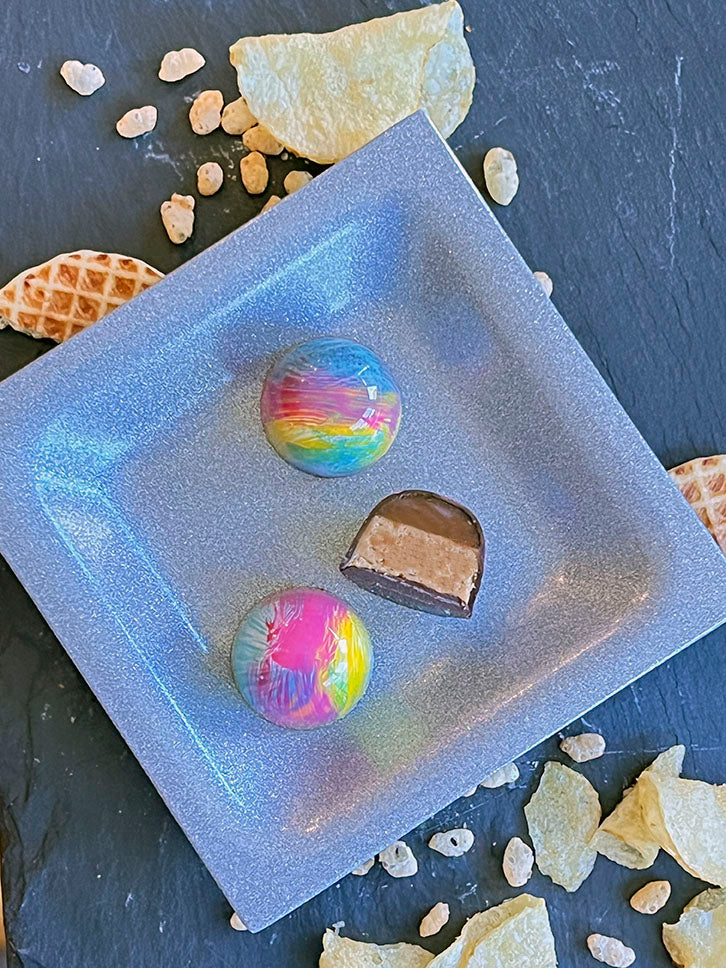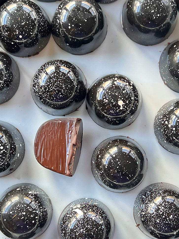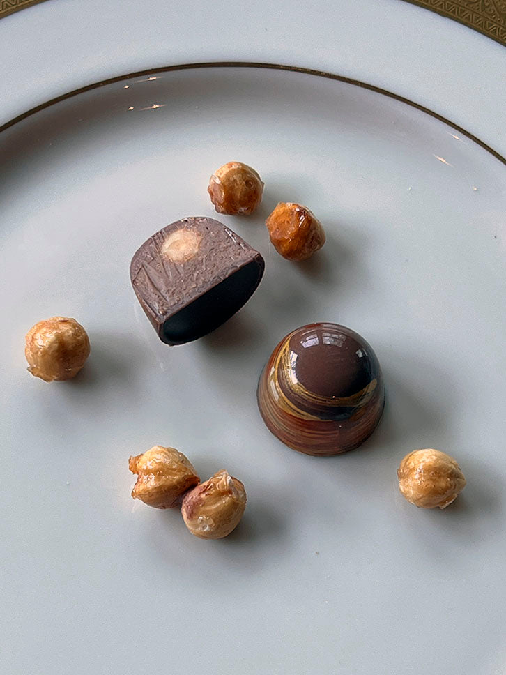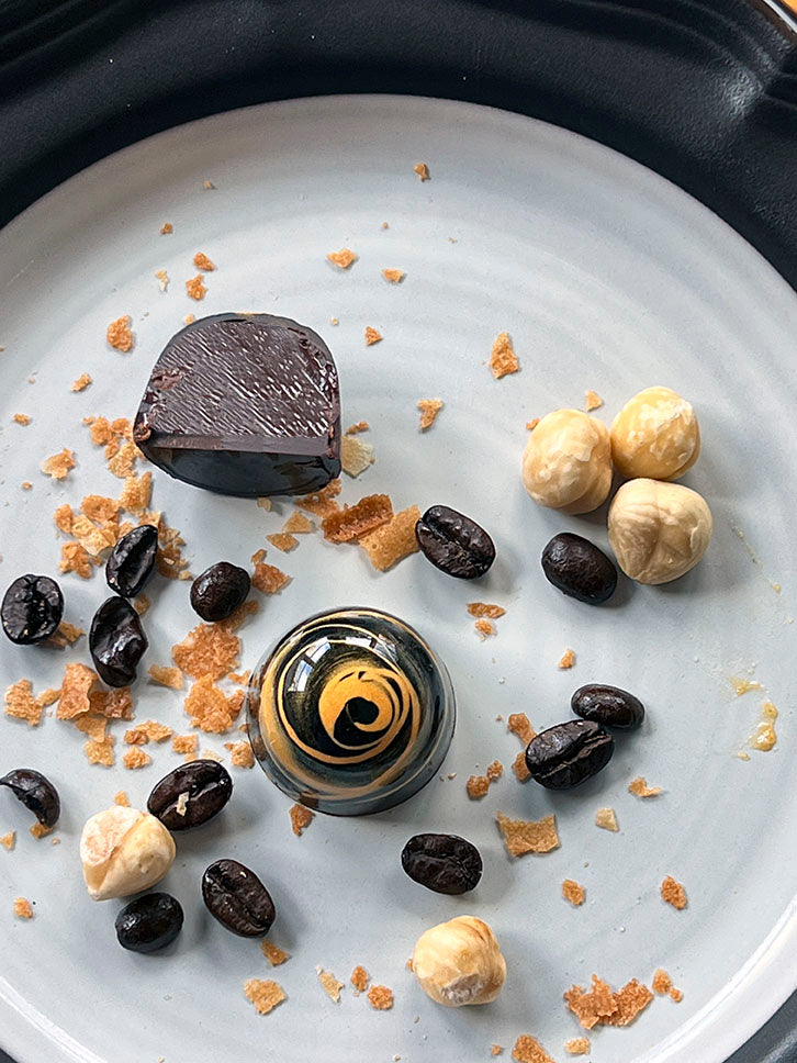 Ingredients: dark chocolate coffee ganache, hazelnut and coffee praline