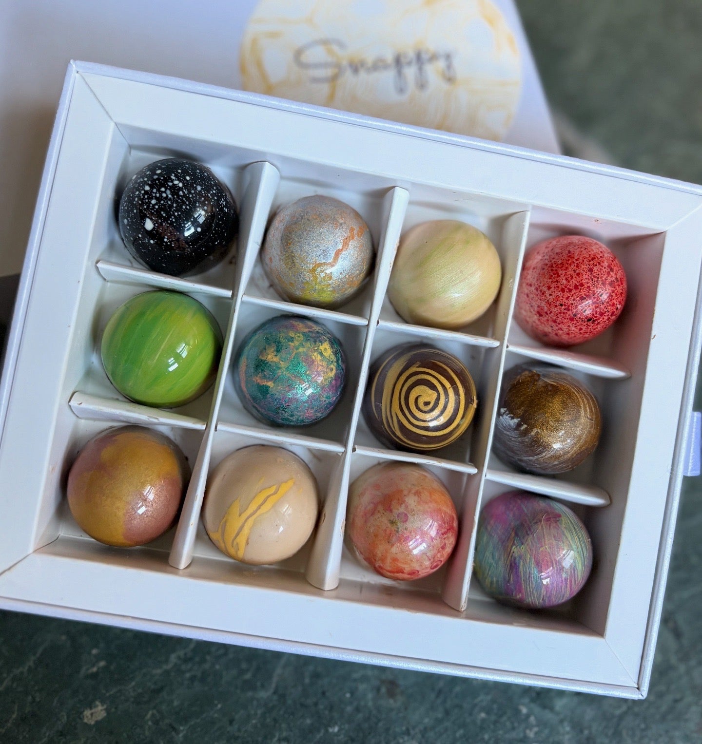 Our bonbons are all made with fresh ingredients. Please enjoy them within 2 weeks of receiving your box. Store in a cool, dry place, ideally around 64 degrees.