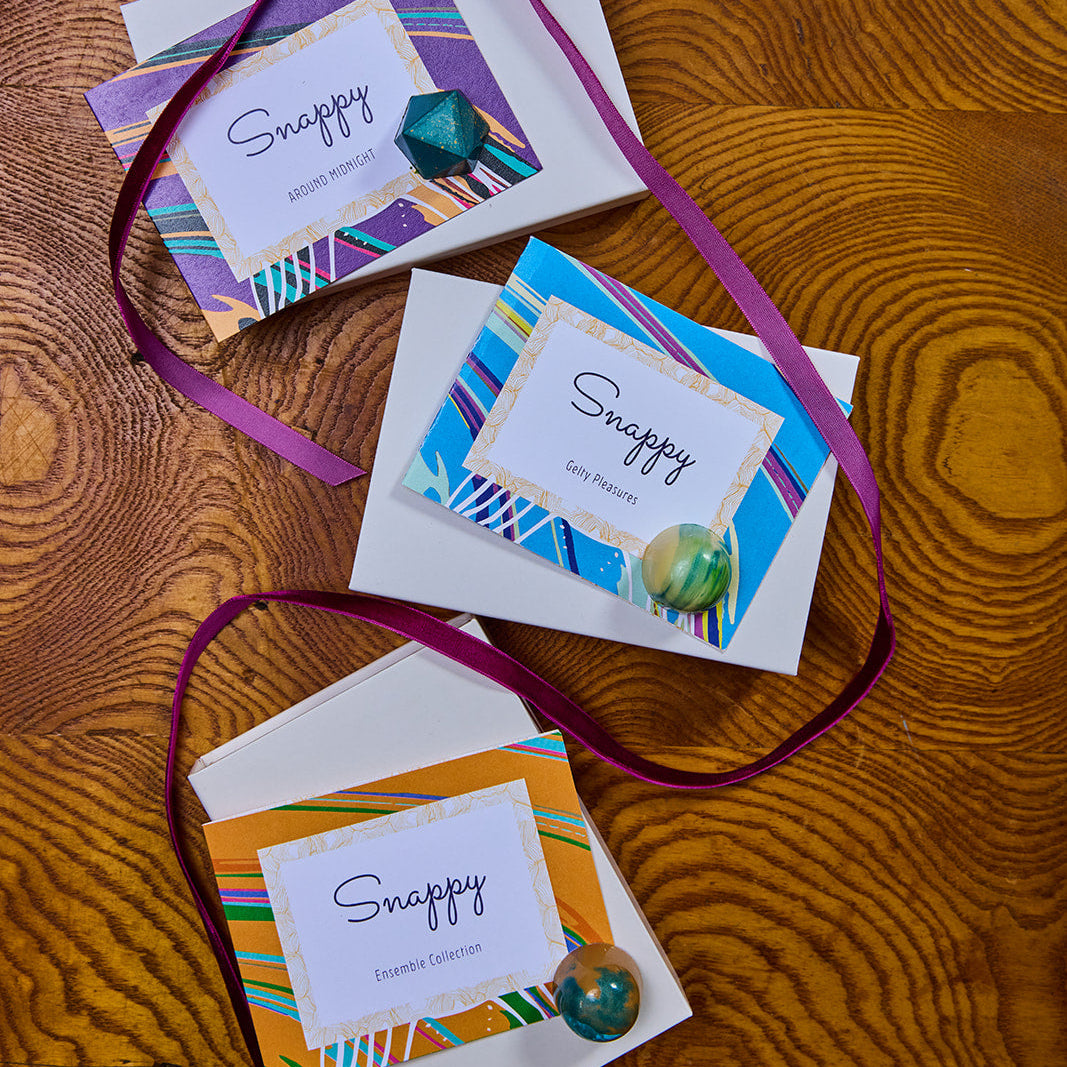 Delicious bonbons, EVERY MONTH?! Treat those special folks in your life (or yourself!) to a unique Snappy experience each month. You can choose between a 6-piece or 12-piece box and if you'd like the extravaganza to last 3 months or 6 months. The first box of your subscription will include a hand-written note, for that extra touch.